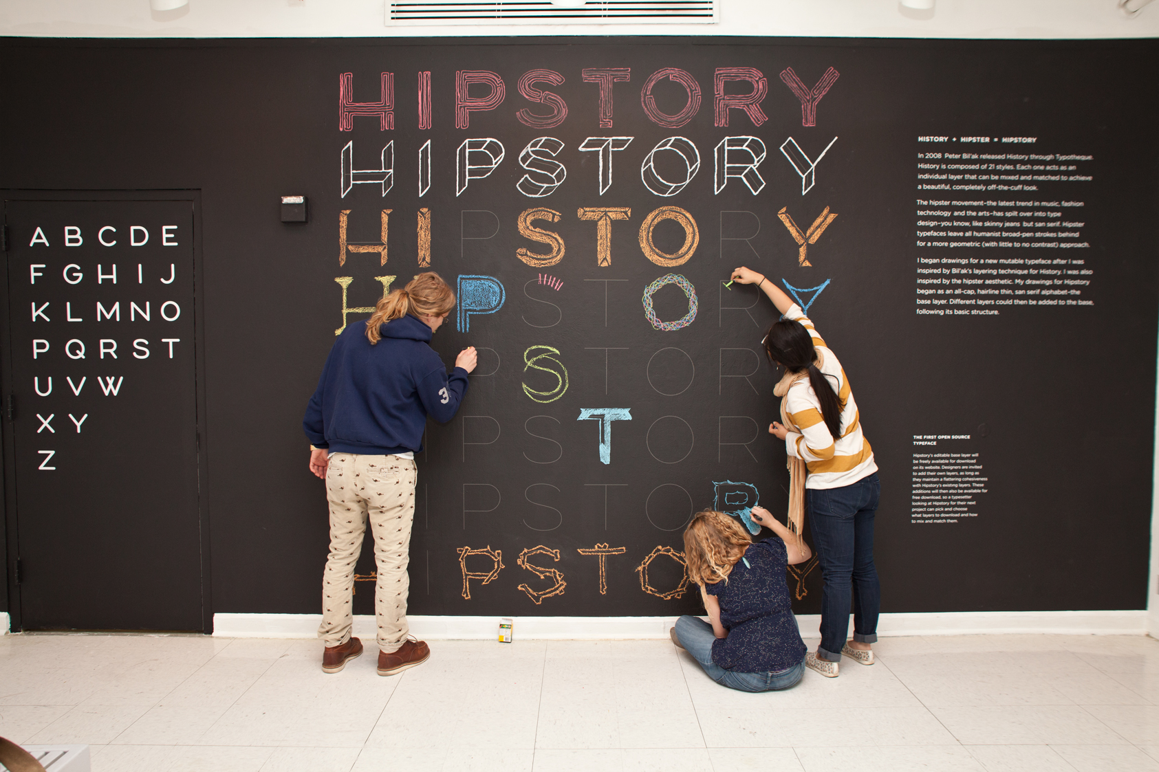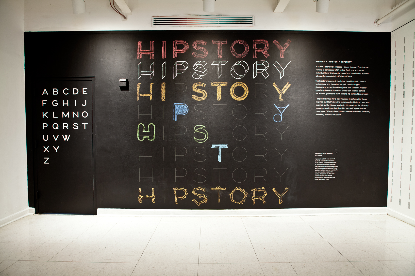 Open source is a term commonly used by coders and web developers to refer to any software for which the source code is freely available for anyone to use or modify. Hipstory will be the first open source font. Its editable base layer will be freely available for download on its website. Designers are invited to add their own layers, as long as their contributions build upon Hipstory's basic architecture. These additions will then also be available for download, so a typesetter looking at Hipstory for their next project can pick and choose what layers to download and how to mix and match them for their project.