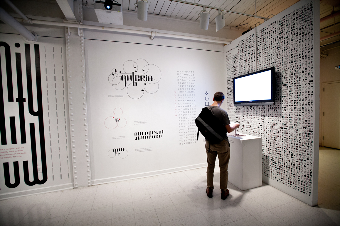 After establishing the alphabets, I made font files from each and converted them into web fonts. Unlike the scripting for Julien and Ed Interlock, the scripting for AlphaBeta is not at the font file level. Instead, I asked Andres Zapata, creative lead at IdFive–an interactive design agency based in Baltimore, MD–to help me write a JavaScript string that would pick a glyph for each character at random on every load of the webpage. When the page is reloaded, the result will rarely be the same.