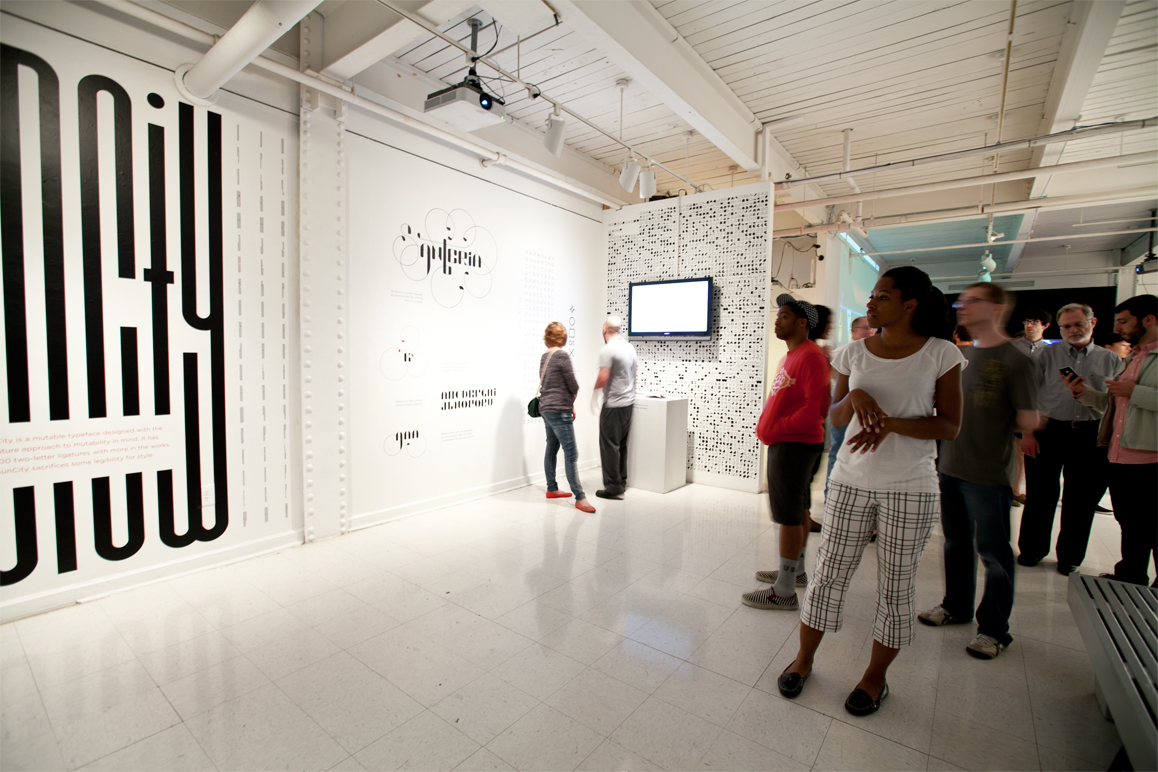 Mutable type is type that changes. With conventional type, typographers have few options, and the letters remain fixed on the page or on the screen. The letters don't change. With mutable type, typographers have more power to change how they set the type, how that typesetting is displayed in any given media, and what parts of it might vary over time. Mutable typography encompasses different kinds of type–alphabets, letterings, and typefaces.