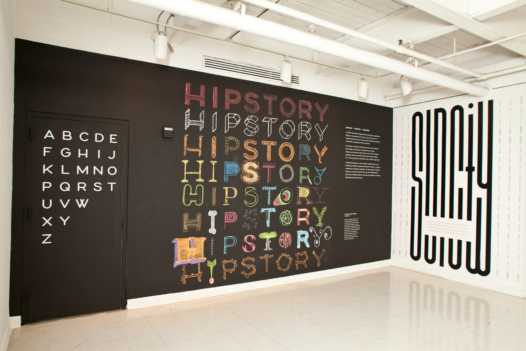 I began drawings for a new mutable typeface after I was inspired by Bil'ak's layering technique for History. I was also inspired by the hipster aesthetic. History plus Hipster equals Hipstory. My drawings for Hipstory began as an all-cap, hairline thin, san serif alphabet–the base layer. Different layers could then be added to the base, following its basic structure. I can only guess that Peter Bil'ak began his drawing for History the same way. The concept of Hipstory then grew.